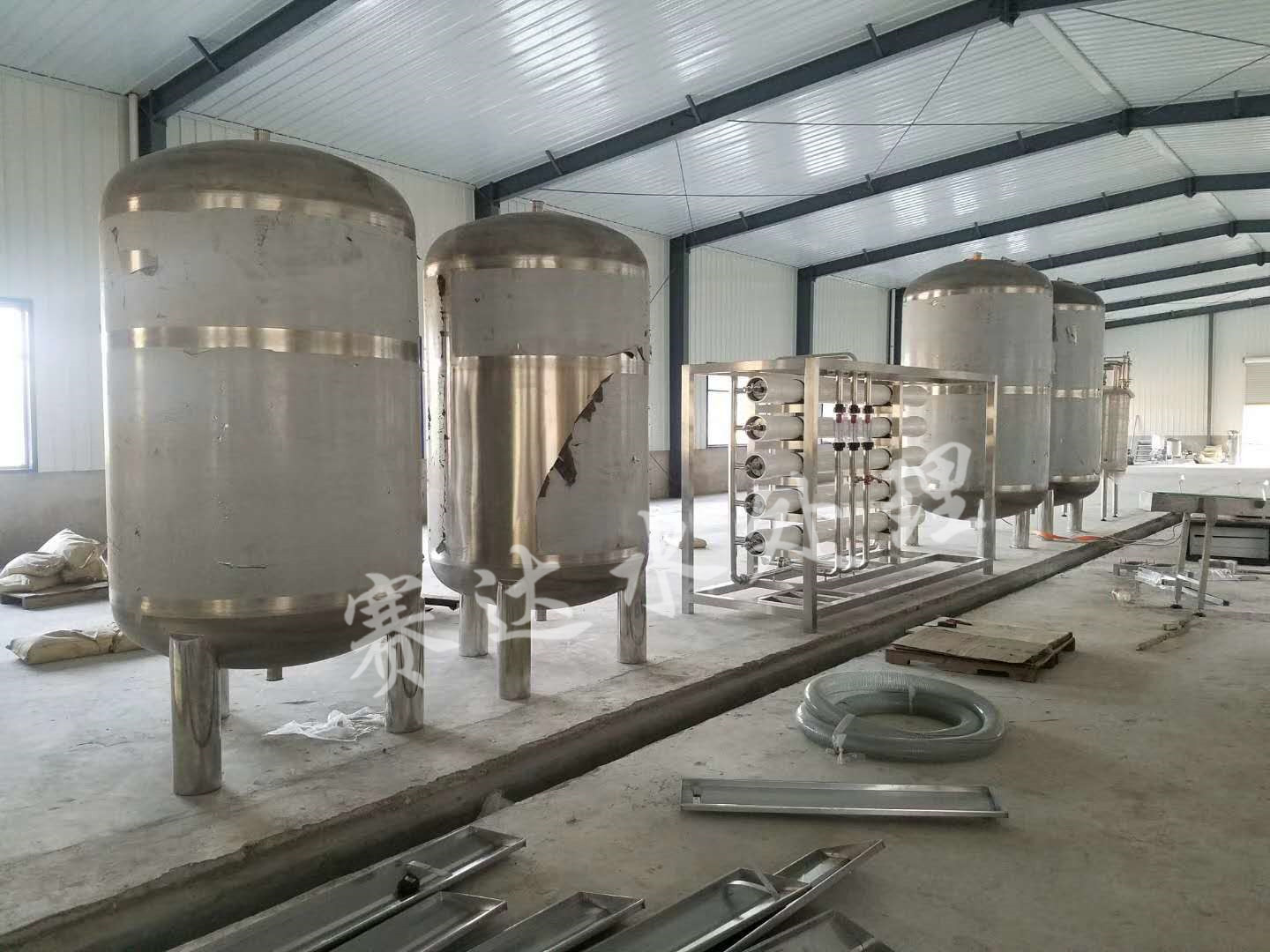 2、預處理系統(tǒng)一般包括原水泵、加藥裝置、石英砂過濾器、活性炭過濾器、精密過濾器等。其主要作用是降低原水的污染指數(shù)和余氯等其他雜質(zhì),達到反滲透的進水要求。